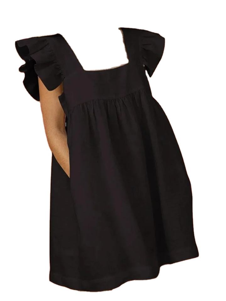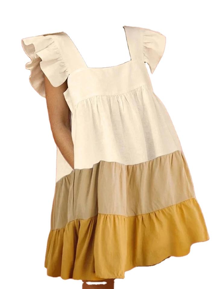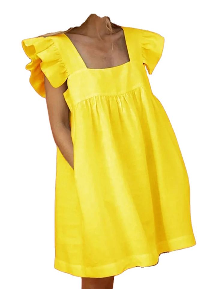 เดรสมินิแต่งระบายสำหรับผู้หญิงชุดเดรสมีกระเป๋าปกสี่เหลี่ยมน่ารักฤดูร้อนแขนผีเสื้อชุดเดรสสำหรับปาร์ตี้ชายหาด