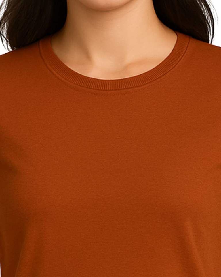 Women Rust Brown Plain Cotton Crew Neck T Shirt Soft Breathable Fabric Short Sleeve Casual Top Perfect for Summer Daily Wear