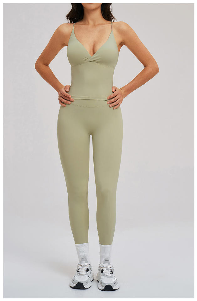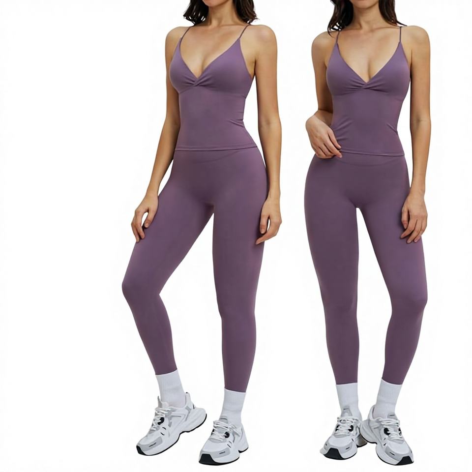 ชุดโยคะ 2 ชิ้นสำหรับผู้หญิง แห้งเร็ว ระบายอากาศได้ดี ไร้รอยต่อ ดีไซน์สีตัดต่อสวยงามด้านหน้า เสื้อกล้ามโชว์หลังสวย กางเกงเอวสูงยกกระชับสะโพก