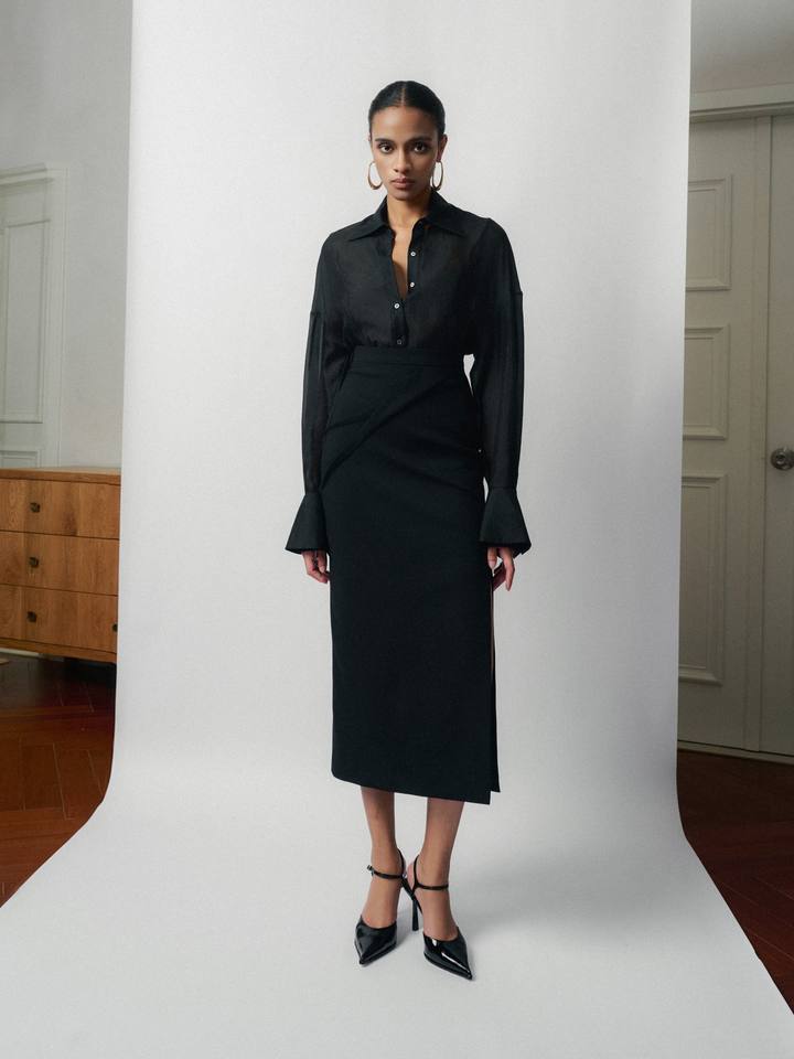 เสื้อเบลาส์ผู้หญิงแขนยาว ASA แบบเก๋ๆช้อปปิ้งออนไลน์คุณภาพดีผลิตในเวียดนาม