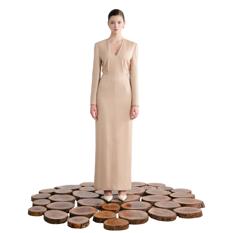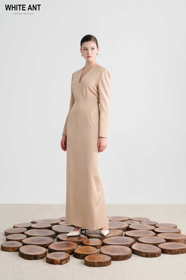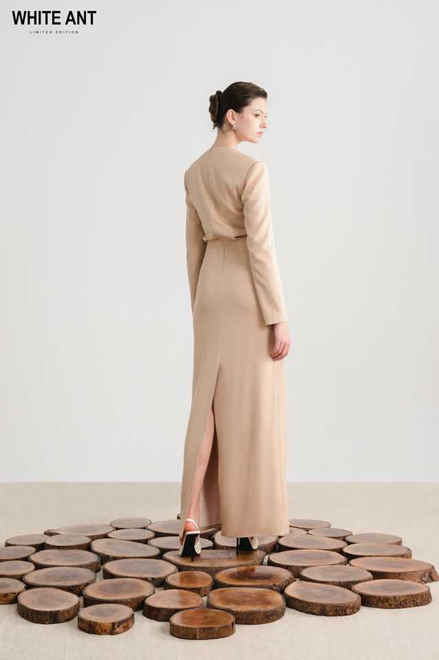 ชุดสตรีอย่างเป็นทางการนักออกแบบแฟชั่นSandroชุดยาวแขนยาวDeknitกลับซาตินGeorgetteกล่องWhiteantผู้ผลิต