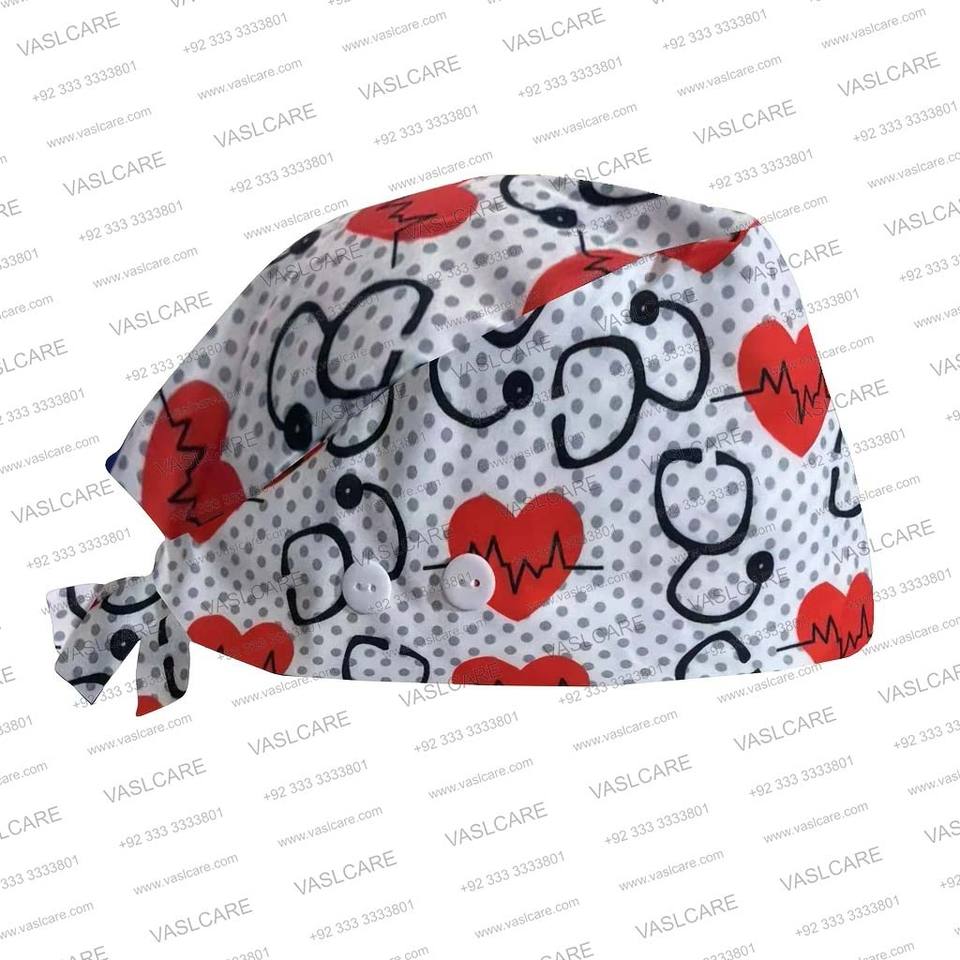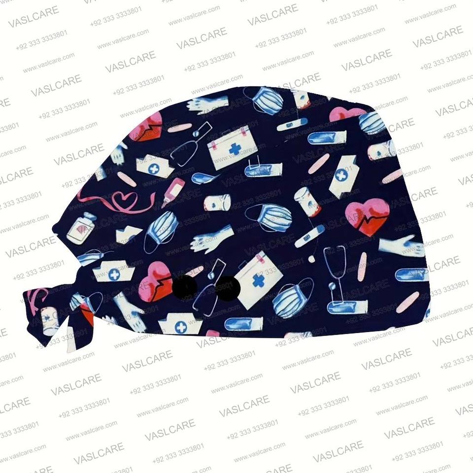 หมวกสครับของผู้หญิงหมวกหมอพยาบาลแบบปรับได้พร้อมกระดุมยืดหยุ่นหมวกพิมพ์ลายทางการแพทย์พร้อมสายรัดเหงื่อโดย vaslcare