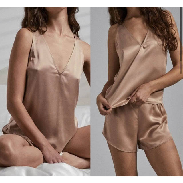 ชุดนอนผ้าไหมซาตินสำหรับผู้หญิงชุดนอนผ้าซาตินนุ่มใส่สบายชุดใส่นอน