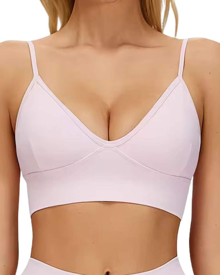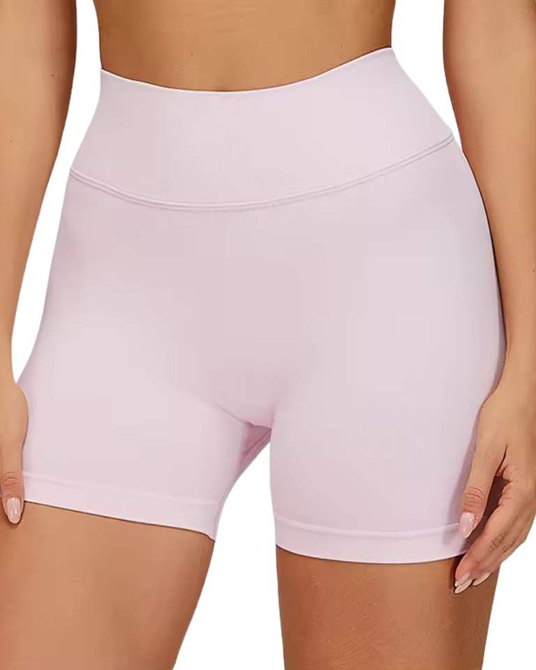 ชุดชั้นในไร้ตะเข็บสำหรับผู้หญิงและกางเกงขาสั้นเอวสูง สีชมพูอ่อน เนื้อผ้านุ่ม ยืดหยุ่น ระบายอากาศได้ดี ชุดกระชับสัดส่วน ชุดออกกำลังกาย ชุดฟิตเนส