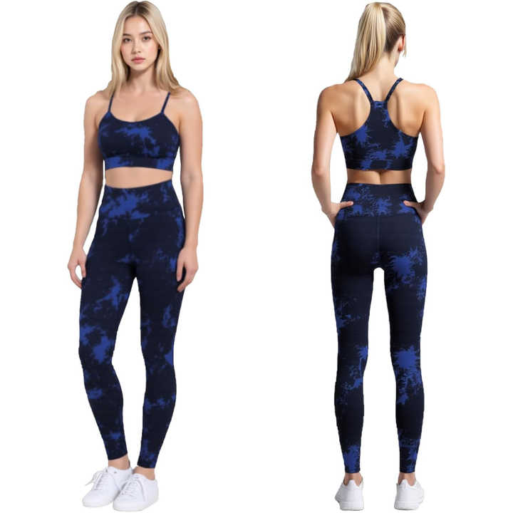 ชุดบราและกางเกงเลกกิ้งเอวสูงสำหรับผู้หญิงชุดโยคะออกกำลังกายฟิตเนสยิมเลกกิ้งเอวยางยืด