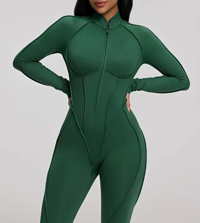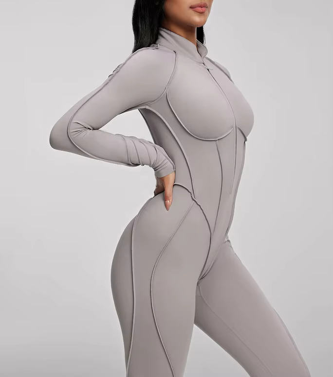 จั๊มสูทออกกำลังกายแขนยาวแบบชิ้นเดียวสำหรับผู้หญิงชุดหมีบอดี้สูทฟิตเนสสำหรับยิมและฝึกซ้อม