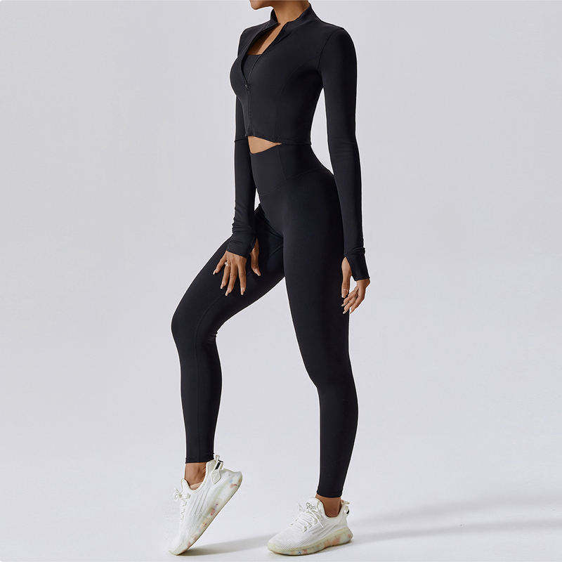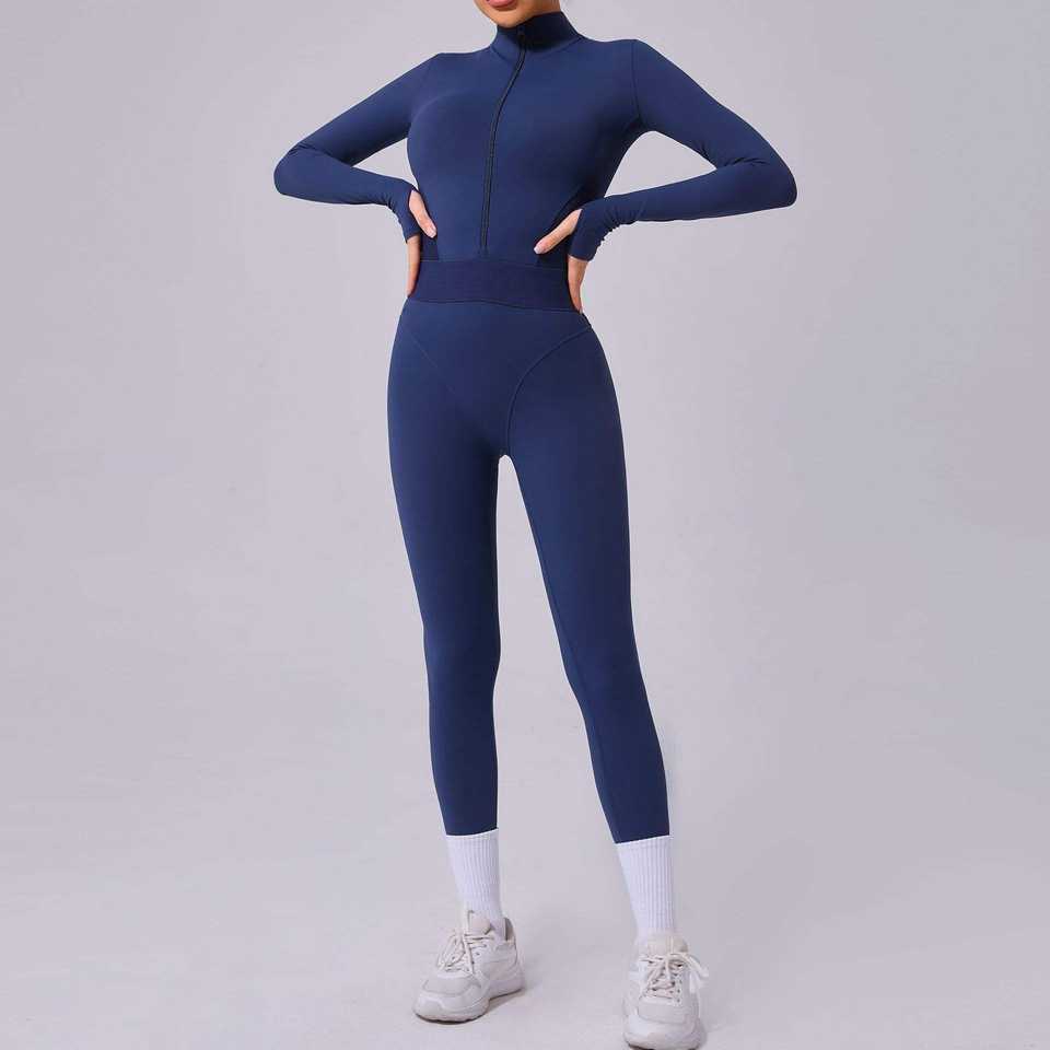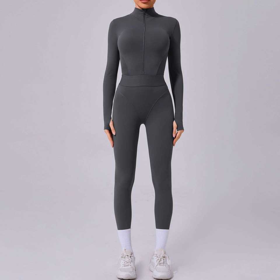 จั๊มสูทโยคะไร้ตะเข็บสำหรับผู้หญิง แขนยาว ซิปด้านหน้า เอวสูง กระชับสัดส่วน สำหรับออกกำลังกาย ฟิตเนส บอดี้สูท