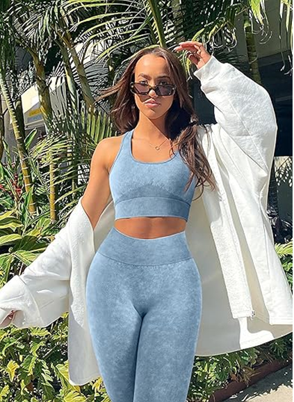 ชุดออกกำลังกายโยคะไร้ตะเข็บสำหรับผู้หญิงชุด2ชิ้น