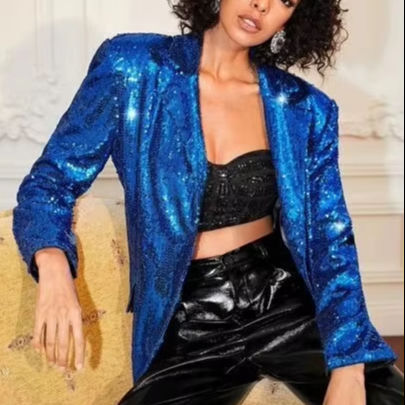 เสื้อแจ็คเก็ตผู้หญิงประดับเลื่อมวิบวับ แฟชั่นเสื้อเบลเซอร์สำหรับงานปาร์ตี้ เสื้อคลุมทันสมัยสำหรับออกงานกลางคืน เสื้อคลับแวร์สุดอินเทรนด์