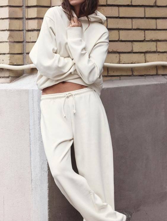 ชุดฮู้ดดี้ผ้าฟลีซสองชิ้นแขนสั้นสีพื้นสำหรับผู้หญิงไซส์ใหญ่ สำหรับฤดูใบไม้ร่วง ผลิตในบังกลาเทศ บริการ OEM ODM ระบายอากาศได้ดี