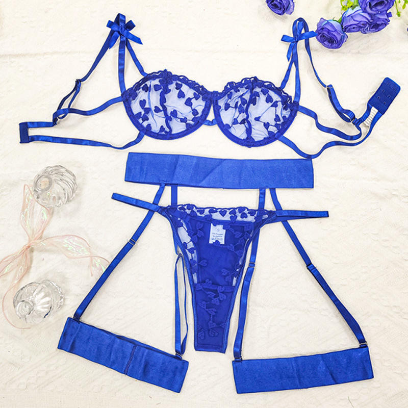 ชุดชั้นในเซ็กซี่ผู้หญิง ชุดปักลายสามชิ้น ชุดชั้นในแฟชั่นซีทรู ชุดชั้นในแบบโปร่งใส ชุดบราและกางเกงใน