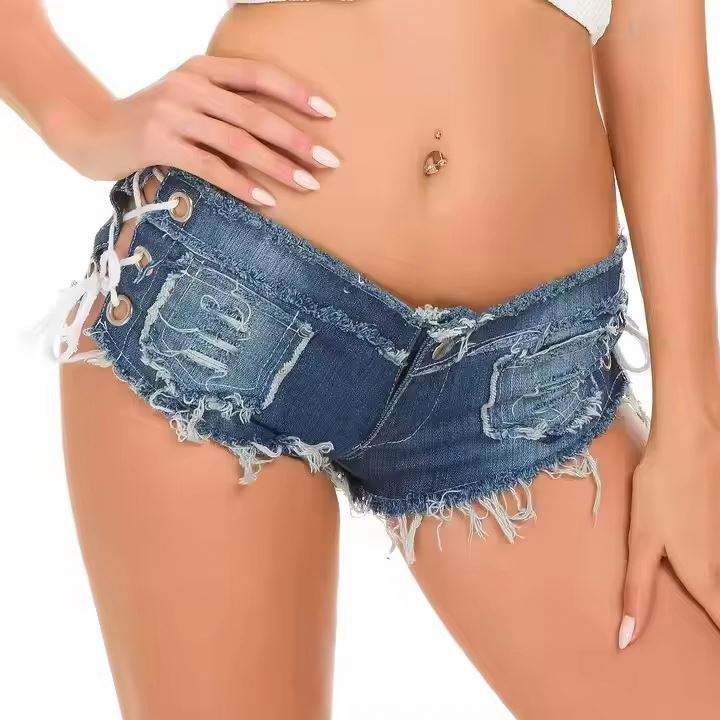 กางเกงยีนส์ขาสั้นสุดเซ็กซี่สำหรับผู้หญิงกางเกงขาสั้นแฟชั่นเอวต่ำมีเชือกผูกผ้ายีนส์กางเกงขาสั้นชายหาดลำลองสั้นขนาดเล็กสำหรับคลับปาร์ตี้บิกินี่