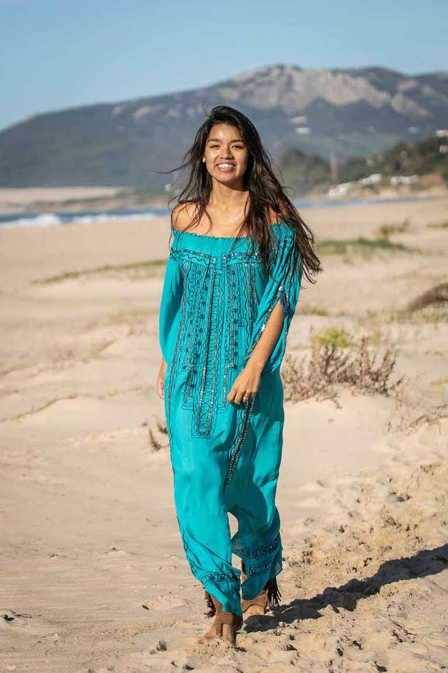 ชุดเดรสเกาะอกเซ็กซี่สำหรับผู้หญิง,ชุดเดรสยาวปักลายเกาะอกระเบิดได้สำหรับใส่เดินชายหาด