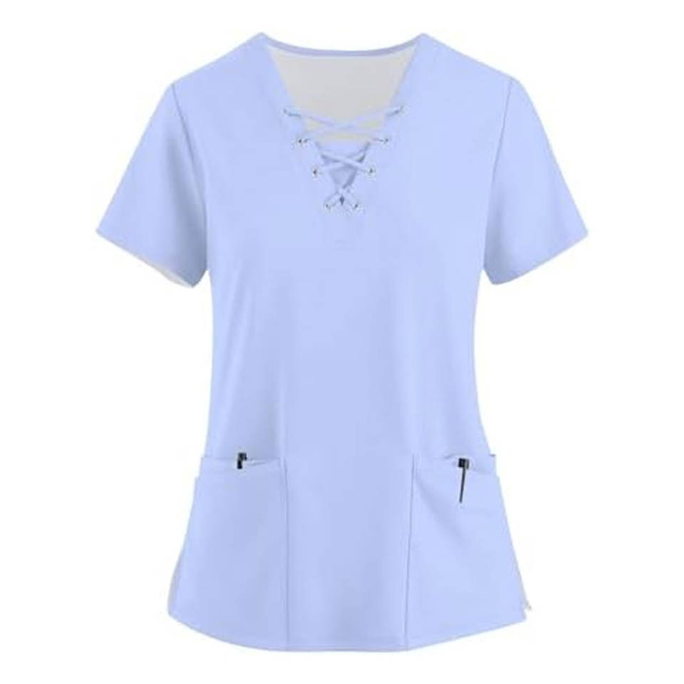 เสื้อสตรีแขนสั้นผ้าสแปนเด็กซ์เสื้อพยาบาลแขนสั้นระบายอากาศได้ดีผลิตตามสั่ง