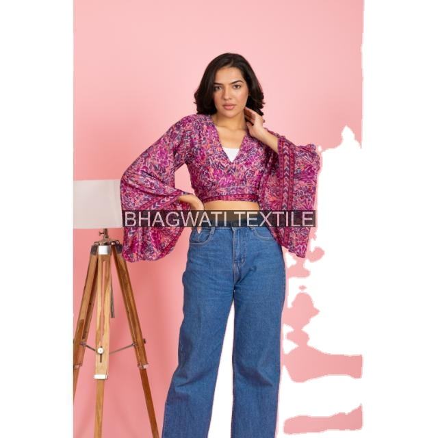 Fashion Element:Vintage, Floral Print, Crop Top, Wrap and Tie