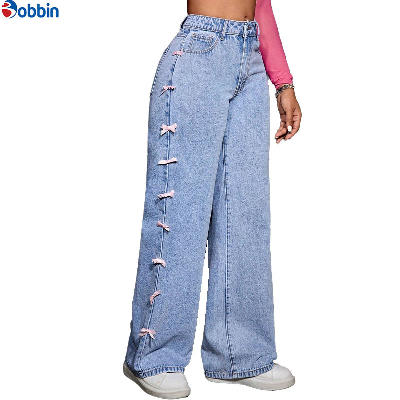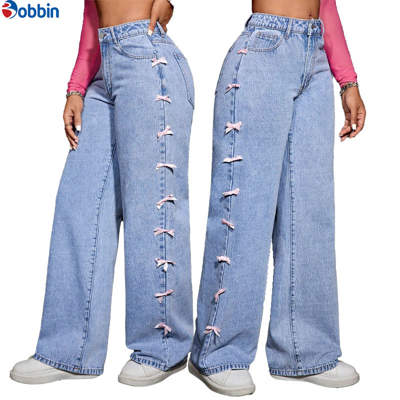 กางเกงยีนส์ทรงหลวมสำหรับผู้หญิง ดีไซน์ใหม่ลายผีเสื้อ ระบายอากาศได้ดี เอวสูง ทรงตรง ขากว้าง