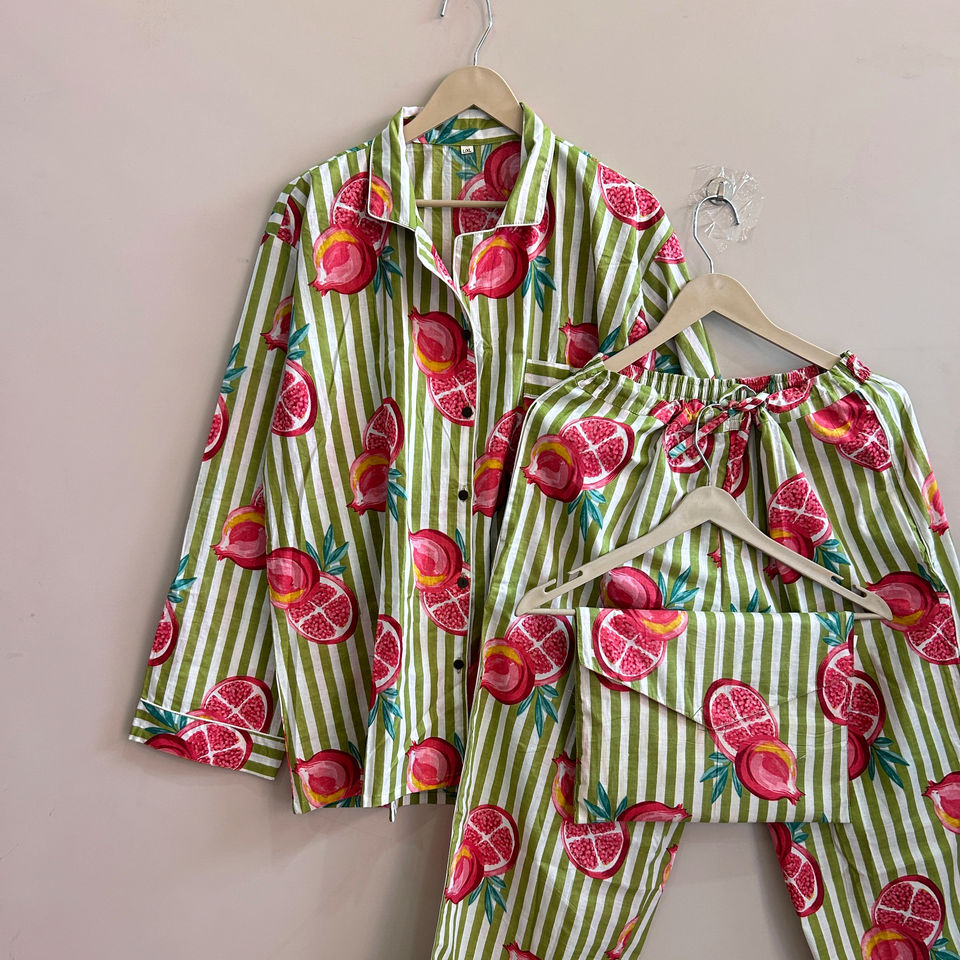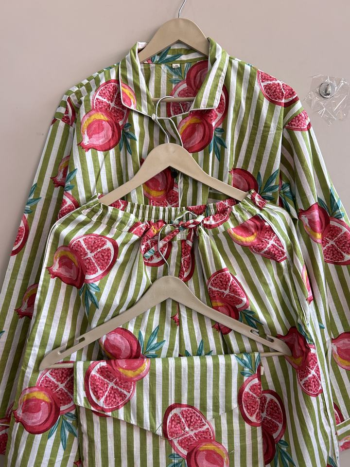 ชุดนอนผ้าฝ้ายสำหรับผู้หญิง ชุดนอนสบายๆ เสื้อเชิ้ตและกางเกงขายาวผ้าคอร์ดเนื้อนุ่ม
