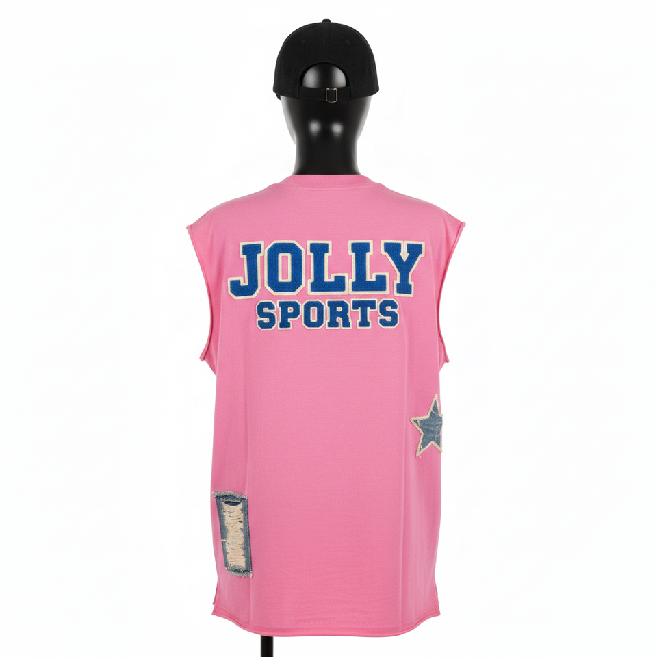 เสื้อกล้ามผู้หญิง ผ้าฝ้ายเจอร์ซีย์ สีชมพูฟอก ลายกราฟิก ปักลาย ปักโลโก้ตามสั่ง เสื้อกล้ามผู้หญิง ผ้าฝ้าย