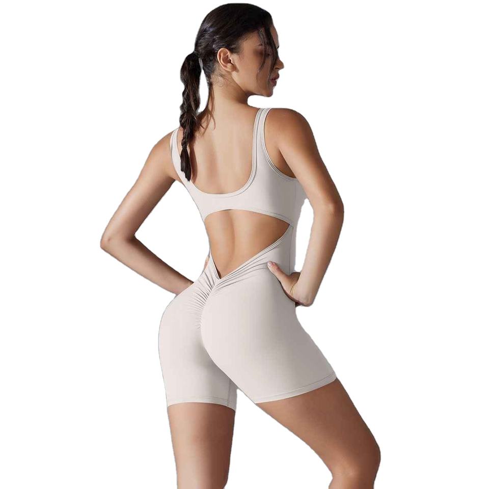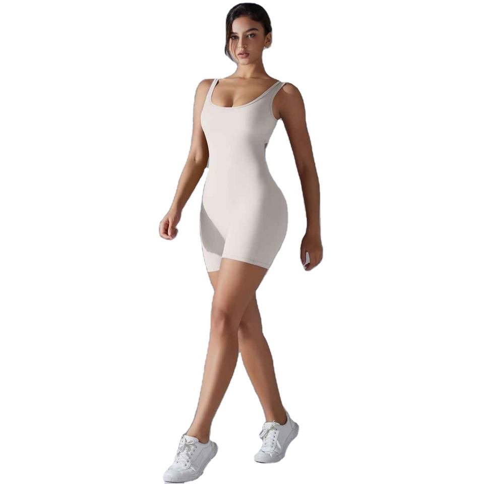 ชุดออกกำลังกายผู้หญิงทรงสลิมฟิต แขนกุด คอวีลึกด้านหน้า ด้านหลังเป็นรูปตัวยู ป้องกันแบคทีเรีย