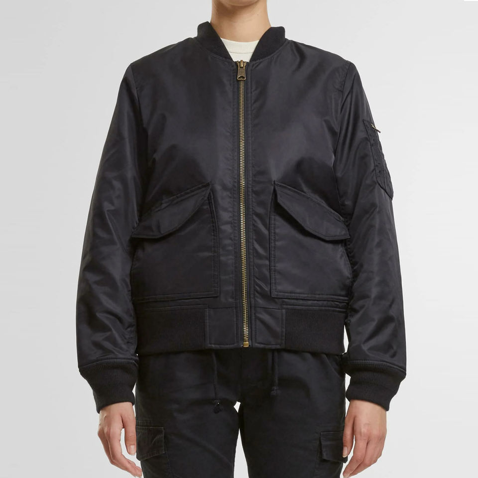 แจ็กเก็ตสตรีผ้าซาตินทรงเข้ารูปสำหรับฤดูหนาวแจ็กเก็ตบอมเบอร์ผ้าซาตินสำหรับกลางแจ้งผลิตตามสั่ง