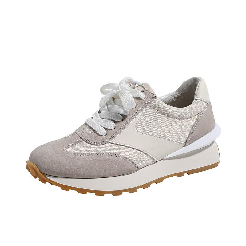 รองเท้าผ้าใบผู้หญิง รุ่นปี 2022 ฤดูใบไม้ผลิ รองเท้ากีฬาพื้นหนา รองเท้าลำลองผู้หญิงแบบผูกเชือก รองเท้าวิ่งแบบหนา สวมใส่สบาย
