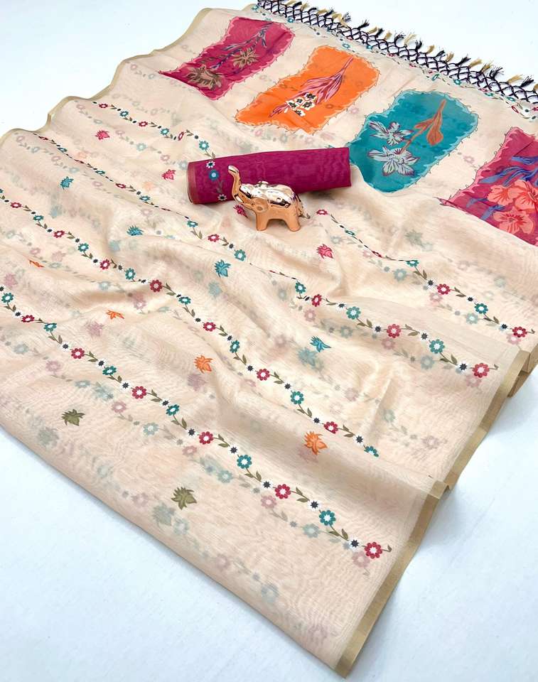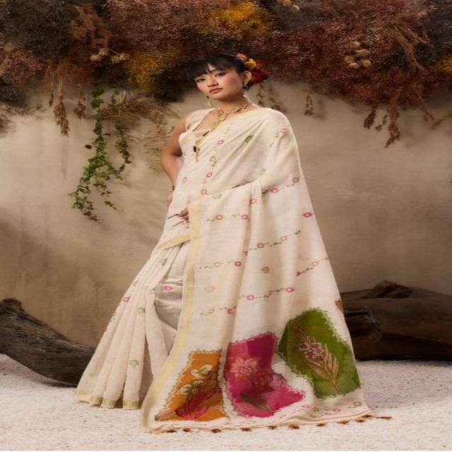 ผ้าซิ่นลินินชานด์รีเนื้อนุ่มสำหรับผู้หญิง ดีไซน์แบบบอลลีวูด ลายดอกไม้ทั้งผืน ดีไซน์พิเศษ หรูหรา ทันสมัย คุณภาพพรีเมียม มีสินค้าพร้อมส่ง ผ้าซิ่นอินเดีย