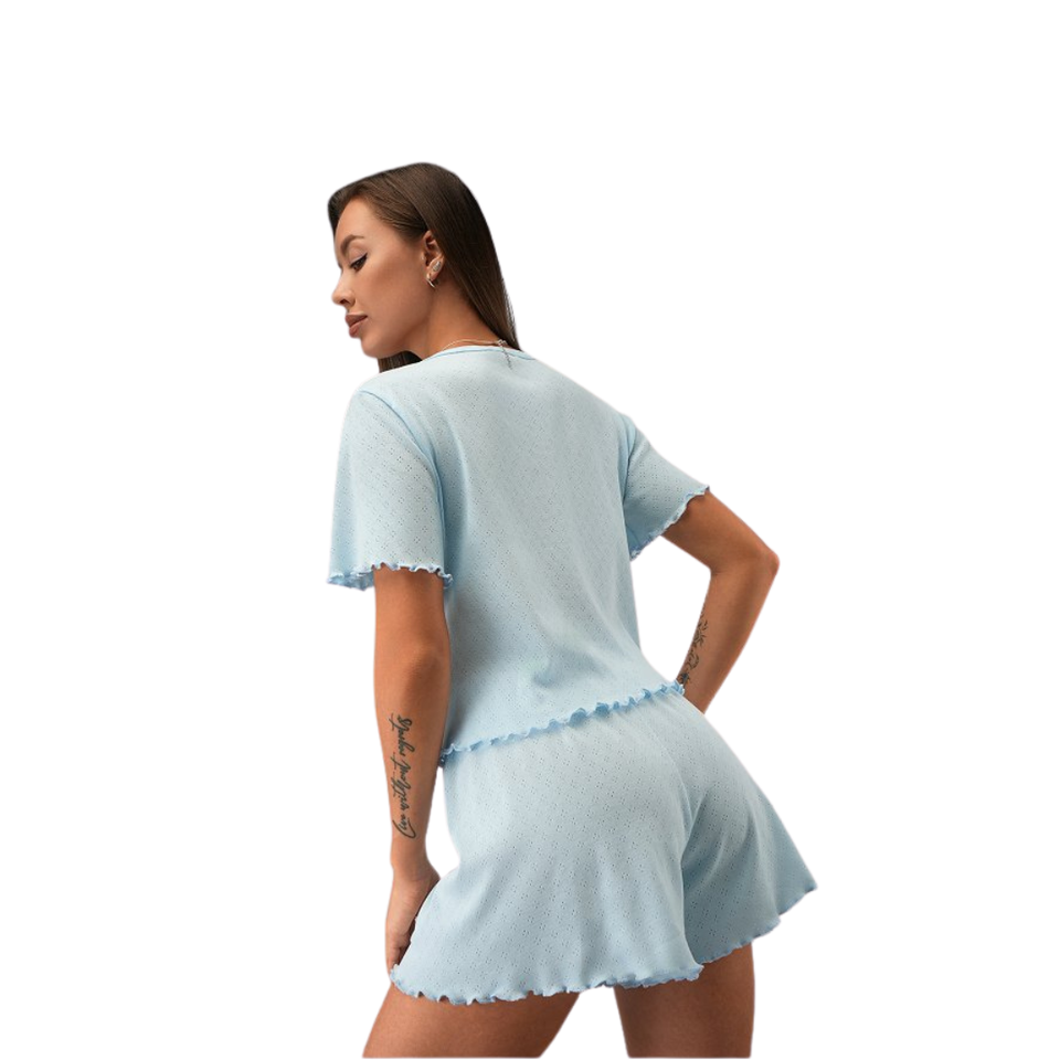 ชุดนอนผ้าฝ้ายเนื้อนุ่มสำหรับผู้หญิง เสื้อยืดและกางเกงขาสั้น ระบายอากาศได้ดี สวมใส่สบาย ไซส์ S-XXL