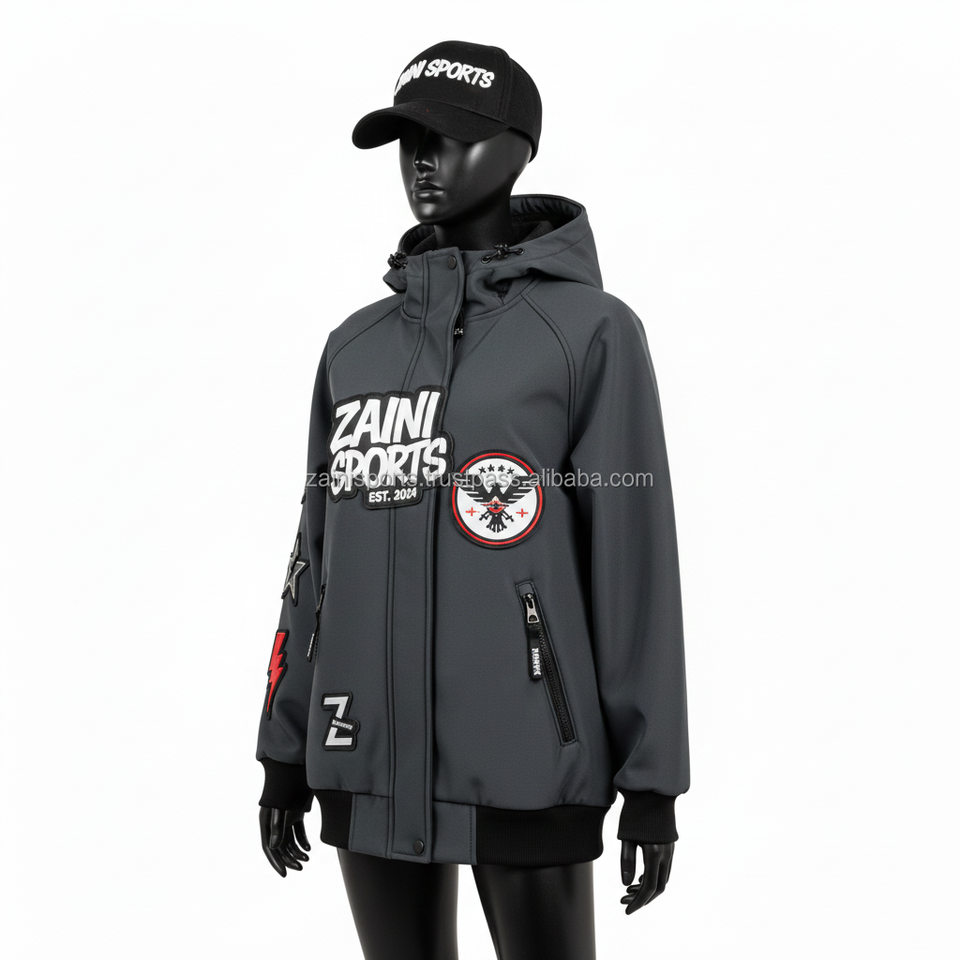 Women Softshell Jacket Windproof Waterproof Triple Layer Fabric Dark Grey Custom Logo Embroidery Patches Women Softshell Jacket
