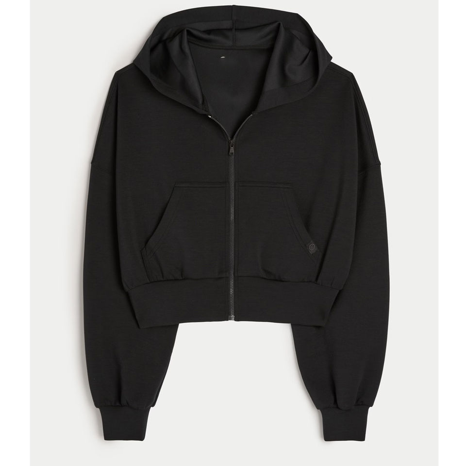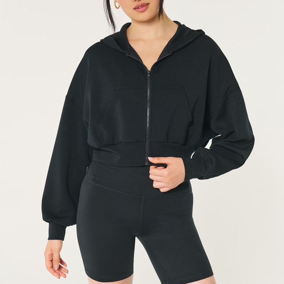 เสื้อครอปมีฮู้ดแขนยาวมีซิปสำหรับผู้หญิงสีทึบเสื้อครอปแบบมีฮู้ดเสื้อออกกำลังกายสำหรับใส่ไปยิม