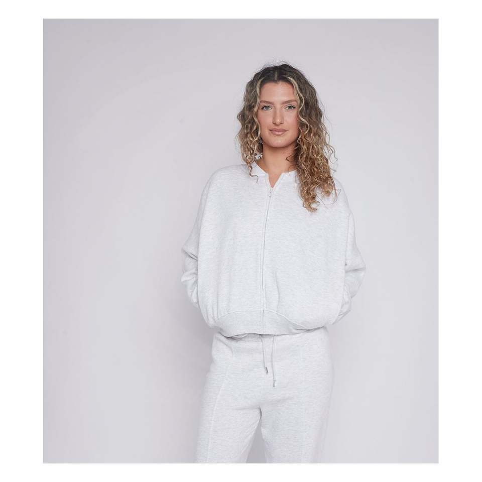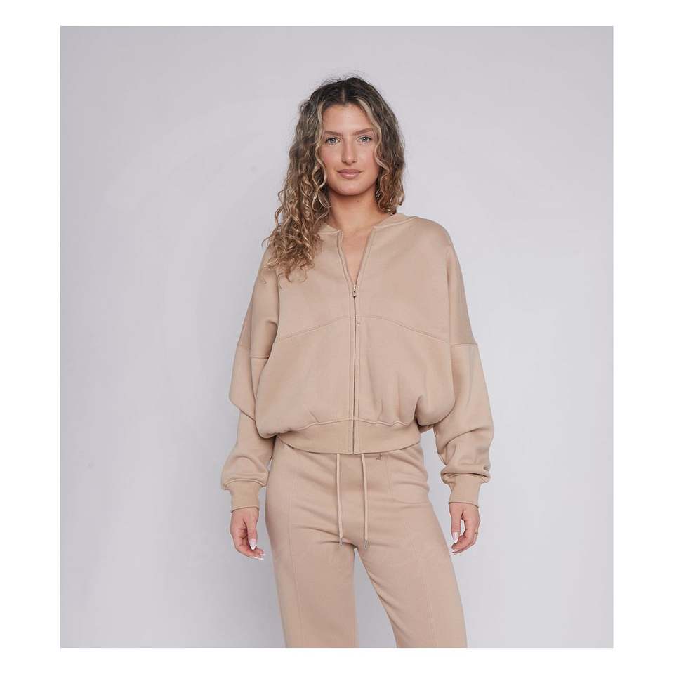 ชุดเลานจ์สีพื้นสำหรับผู้หญิง เสื้อแขนยาวมีซิปและกางเกงมีเชือกผูก