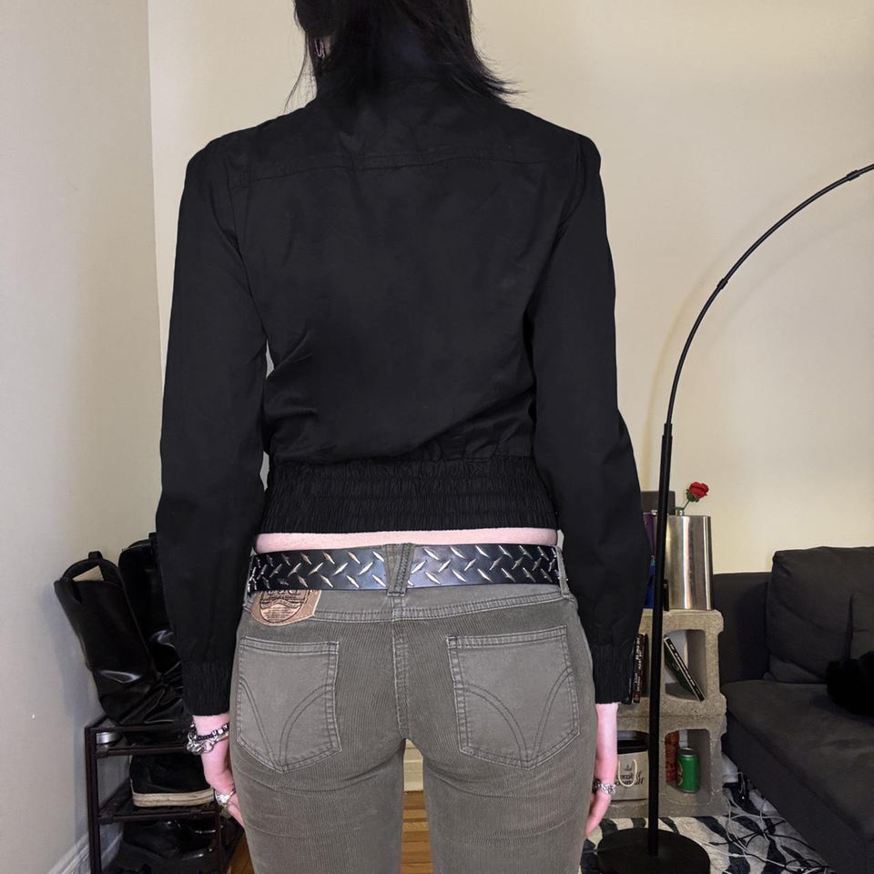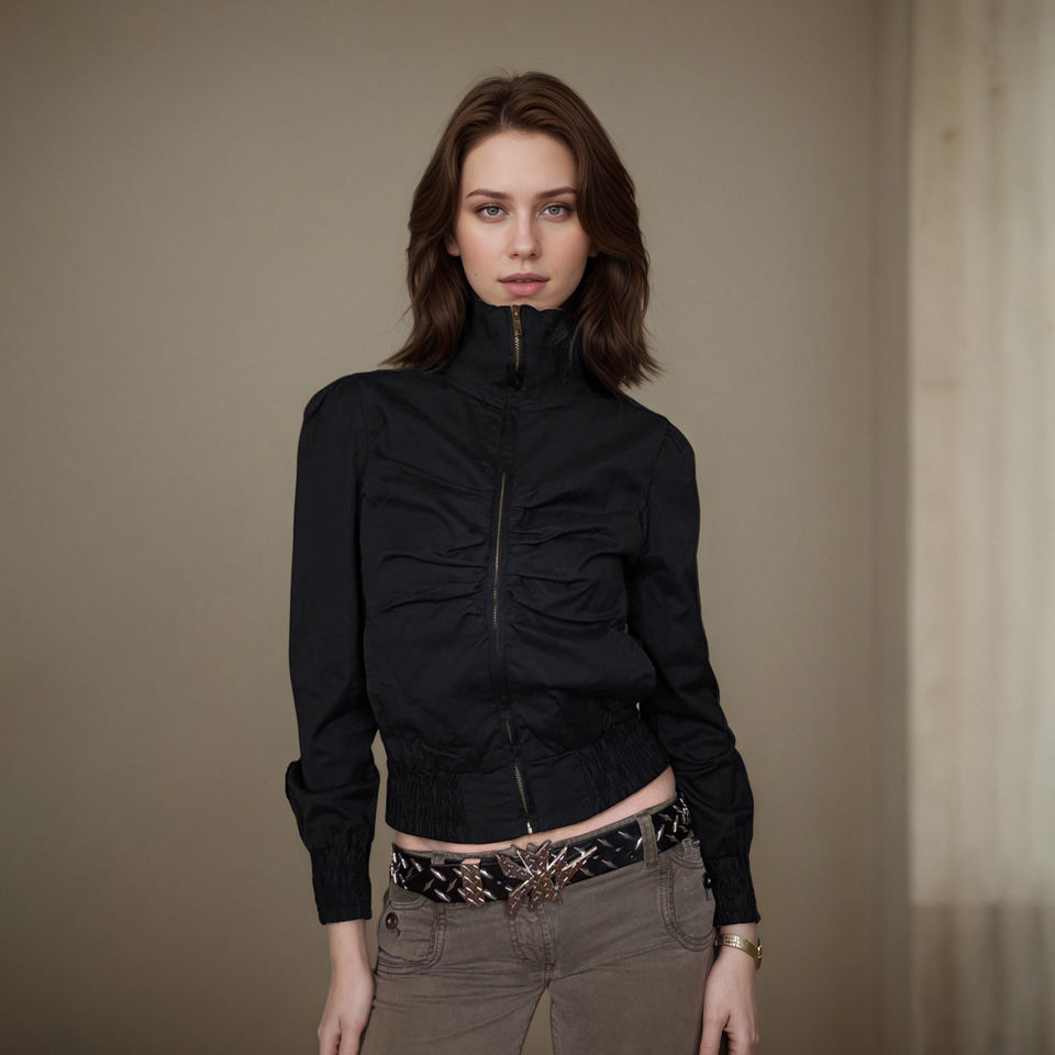 เสื้อแจ็คเก็ตผู้หญิงสีพื้นแบบมีจีบ ซิปหน้า คอตั้ง ทอผ้าสไตล์ Y2K แฟชั่นสตรีทลำลอง ใส่ได้หลากหลาย