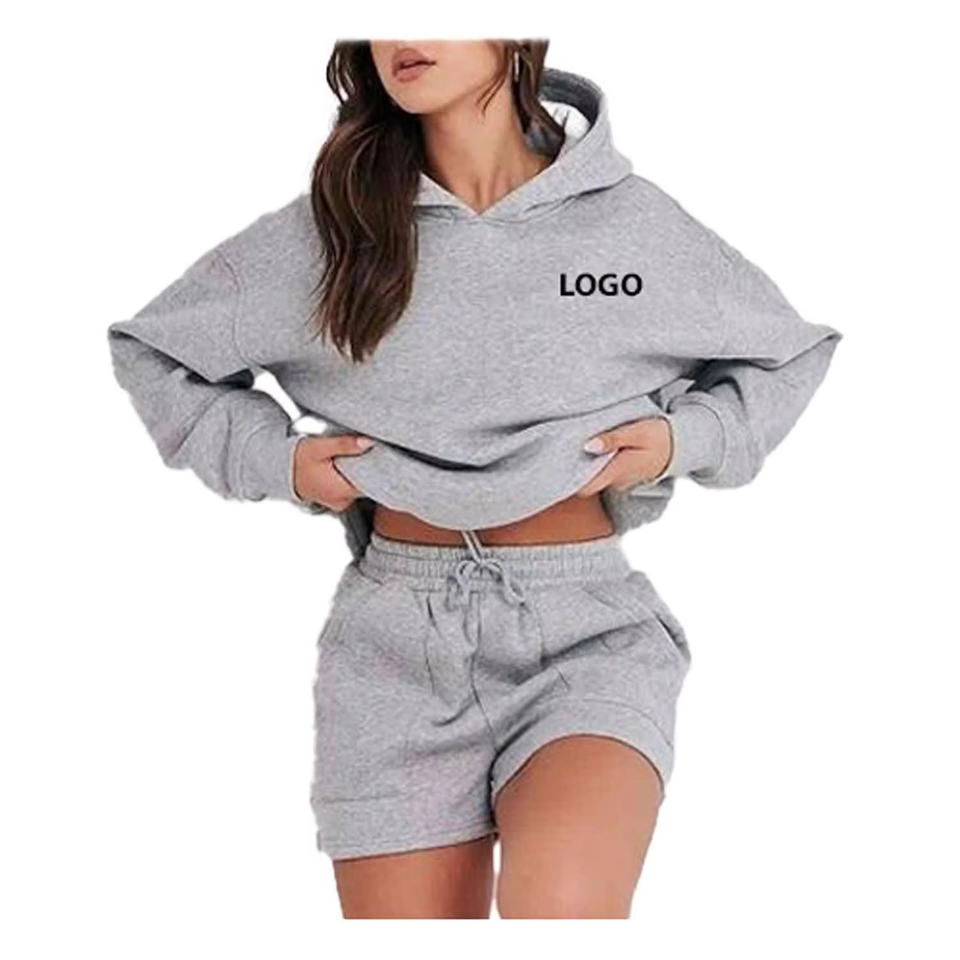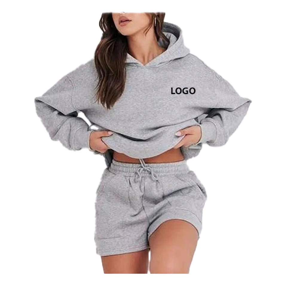 ชุดเซ็ตเสื้อฮู้ดดี้และกางเกงขาสั้นผู้หญิง ผ้าคุณภาพสูง เป็นมิตรกับสิ่งแวดล้อม น้ำหนักเบา ระบายอากาศได้ดี สัมผัสนุ่ม สไตล์ลำลอง ใส่สบาย เหมาะสำหรับฤดูร้อน