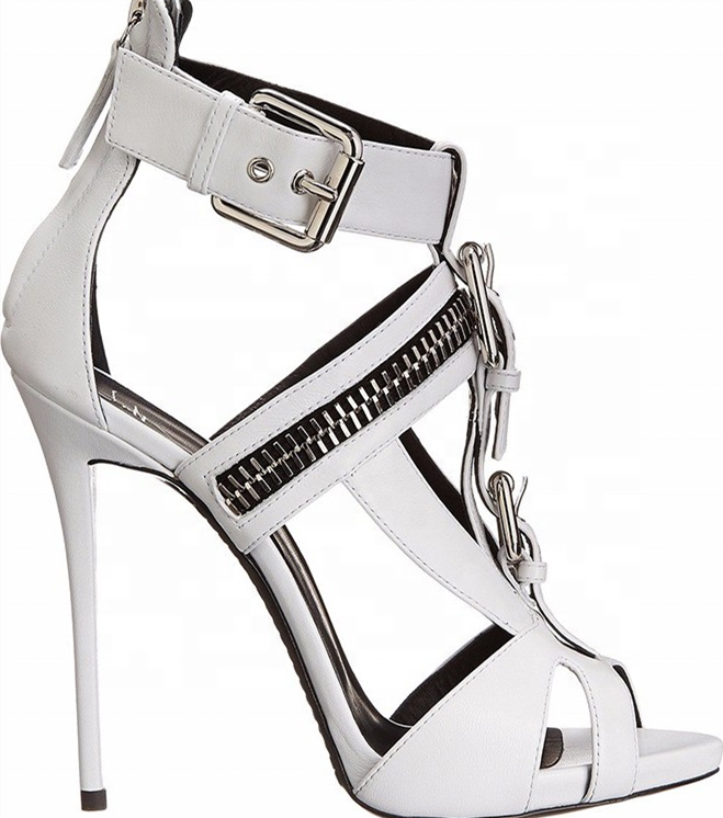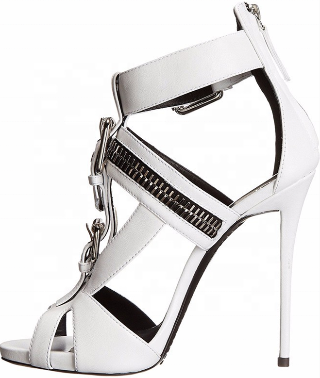รองเท้าแตะดีไซน์พิเศษสำหรับผู้หญิง ปลายแหลม เปิดนิ้วเท้า สายรัดข้อเท้า ซิปโลหะ รองเท้าเดรสฤดูร้อน ส้นบาง แฟชั่น