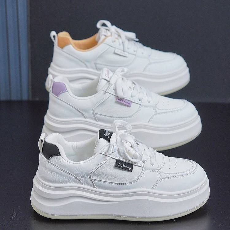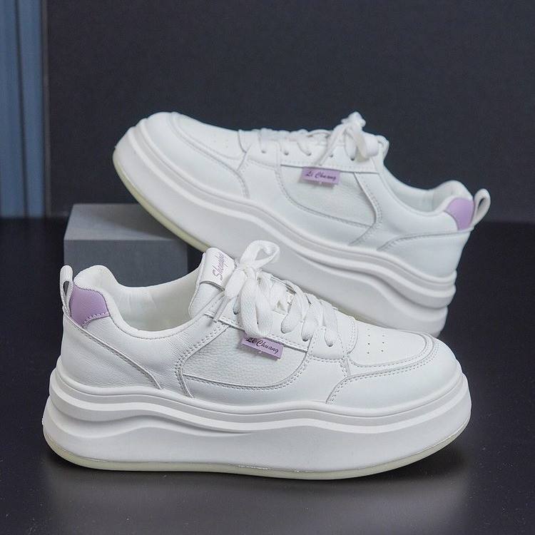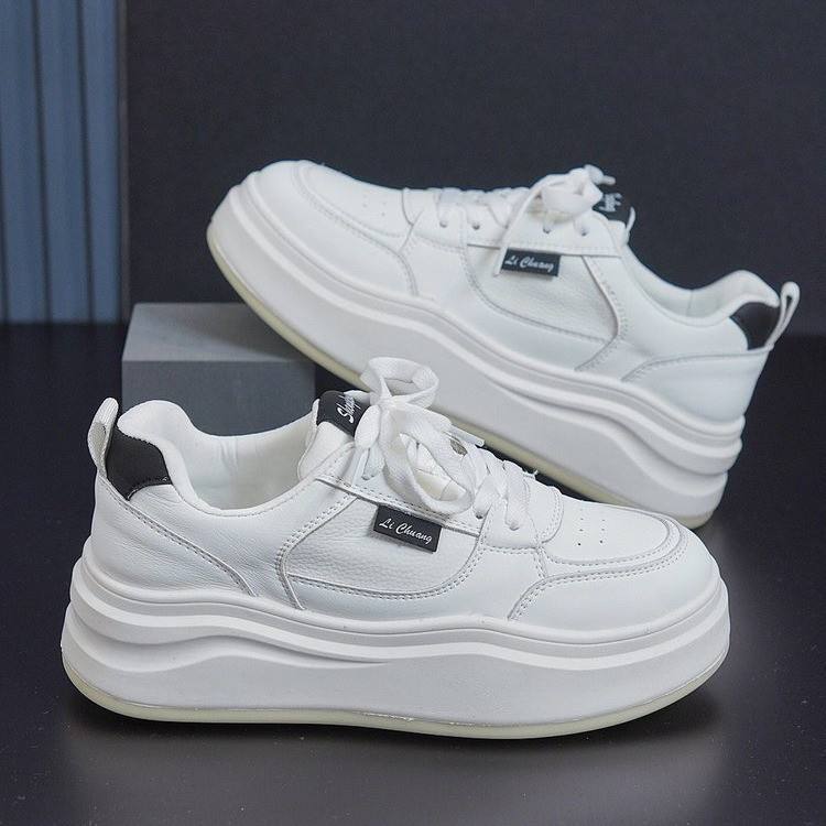รองเท้าสนีกเกอร์ลำลองสีขาวสำหรับผู้หญิง, รองเท้าผ้าใบอเนกประสงค์พื้นหนาระบายอากาศได้ดีสีดำสีขาว
