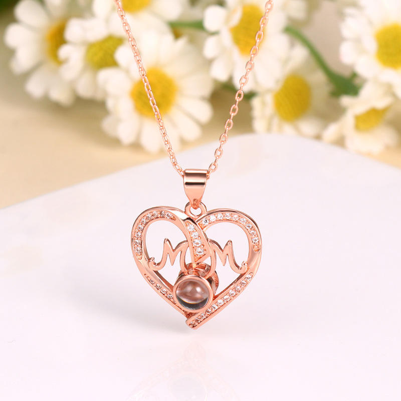 สร้อยคอจี้รูปหัวใจคลาสสิกสำหรับผู้หญิง ทำจากสแตนเลสสตีล ชุบทอง 18K พร้อมสายเชื่อมแบบโปรเจคชั่น คำว่า MOM ของขวัญวันแม่