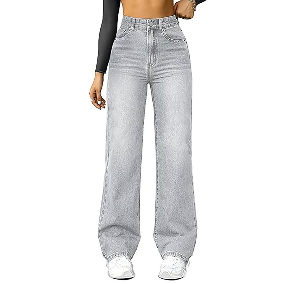 กางเกงยีนส์ขาตรงเอวสูงขากว้างทรงหลวมสำหรับผู้หญิงกางเกงยีนส์สไตล์วินเทจยืดได้โลโก้ออกแบบได้ตามต้องการ
