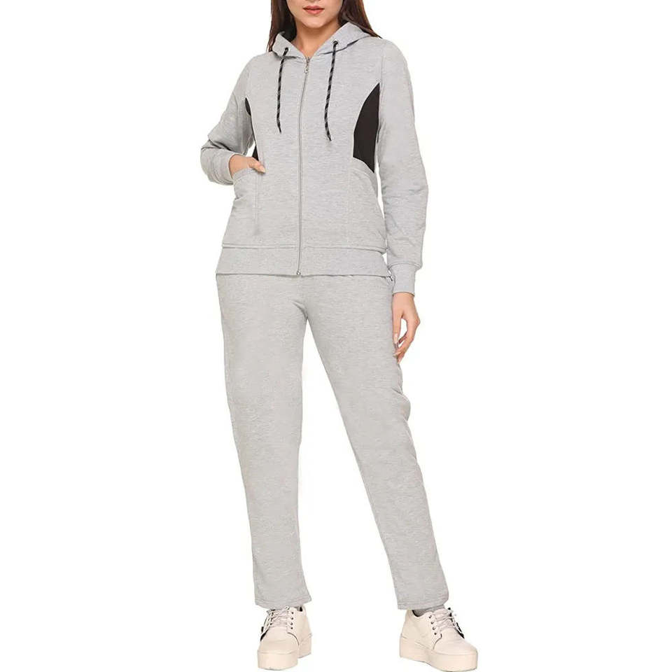 ชุดวอร์มสตรี สตรีทแวร์ ผ้าฝ้ายฟลีซ 100% มีฮู้ด ชุดลำลอง รับผลิตตามแบบ (OEM) ชุดฤดูใบไม้ร่วง ขายส่ง