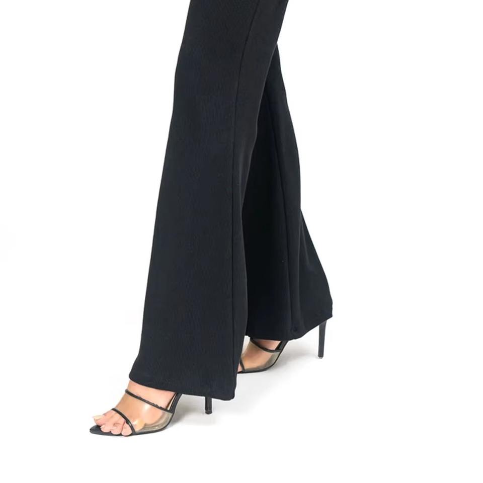 กางเกงขายาวผู้หญิงแบบสวมใส่สบาย รับผลิตโลโก้ตามสั่ง กางเกงสแล็คสีดำคลาสสิกสำหรับสุภาพสตรี ขายส่งจำนวนมาก