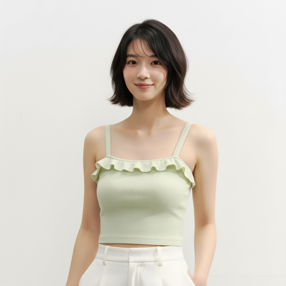 หมายเลขรุ่น:RIBBED KNIT CROP TOP WITH RUFFLE TRIM