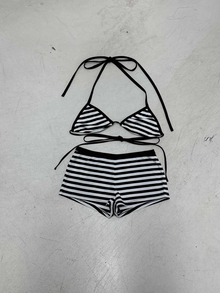 ชุดบิกินี่ลายทางสำหรับผู้หญิง ชุดว่ายน้ำสองชิ้นแบบผูกคอ เซ็กซี่ เหมาะสำหรับใส่ไปชายหาด