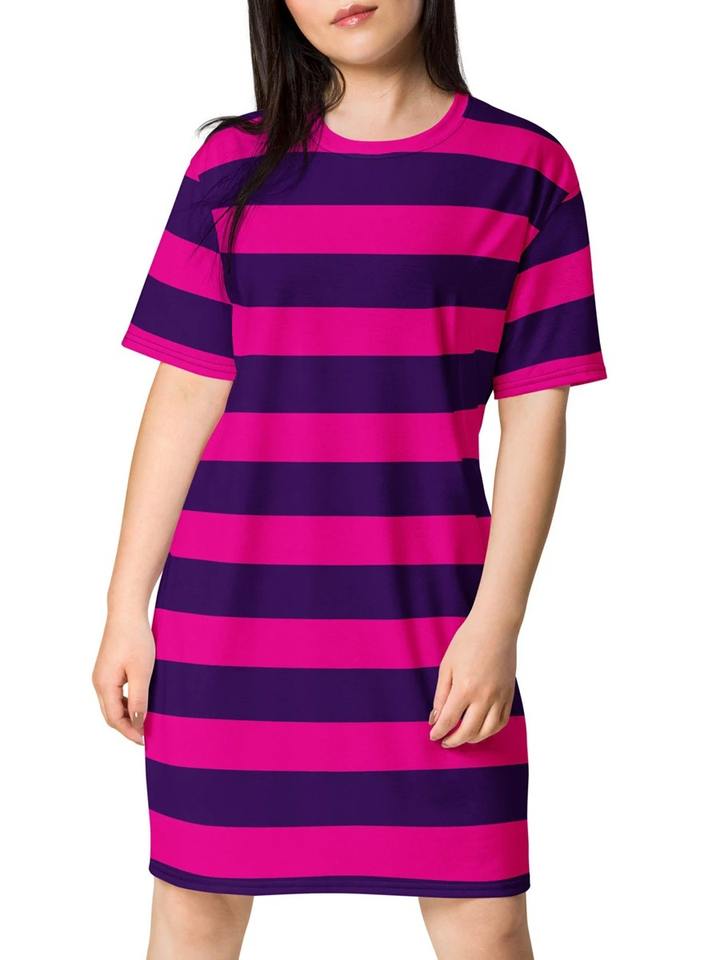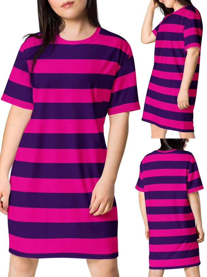Women Striped Dress Short Sleeve Dress Crew Neck Summer Midi Dress for Casual Daily