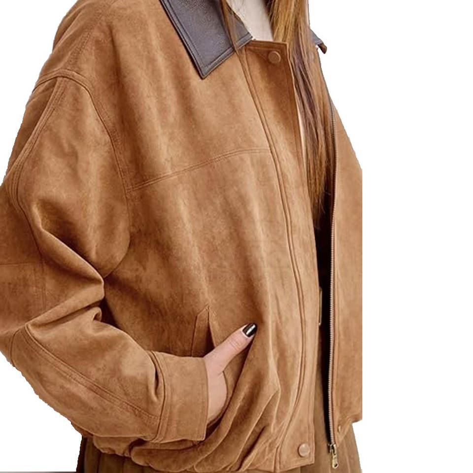 เสื้อแจ็คเก็ตหนังกลับผู้หญิง ระบายอากาศได้ดี คุณภาพสูง เนื้อนุ่ม ดีไซน์ทันสมัยมีสไตล์