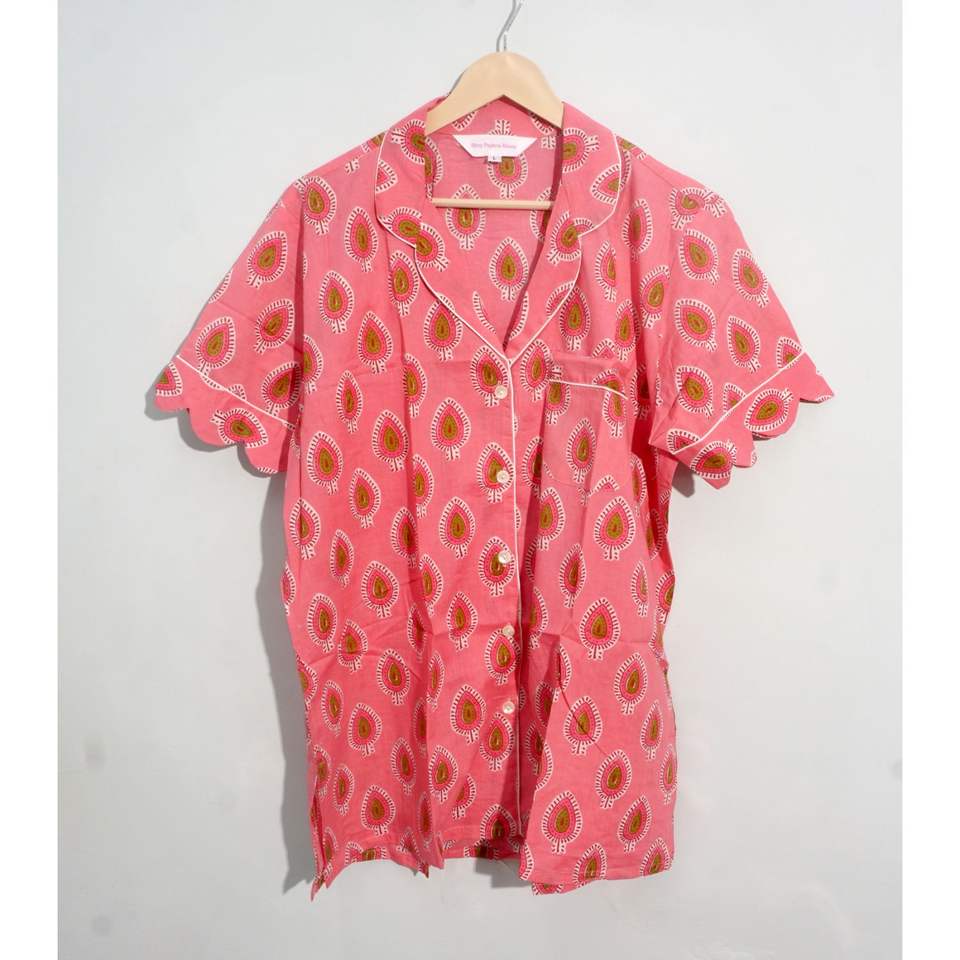 ชุดนอนผู้หญิงฤดูร้อน ระบายอากาศได้ดี ผ้าฝ้าย 100% ชุดนอนแขนสั้นลายดอกไม้ เสื้อนอนเนื้อนุ่ม แห้งเร็ว ซักเครื่องได้