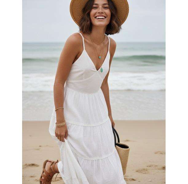 ชุดเดรสฤดูร้อนสำหรับผู้หญิง สวมใส่สบาย ผ้าระบายอากาศได้ดี เหมาะสำหรับวันหยุดพักผ่อนที่ชายหาด การเดินทาง และการสวมใส่ในชีวิตประจำวัน