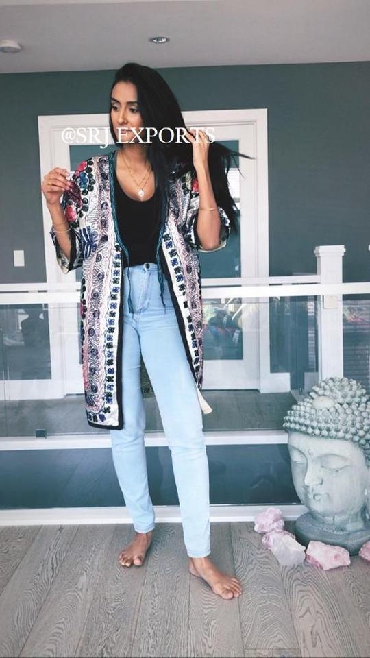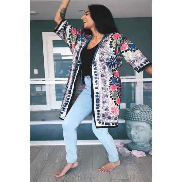 เสื้อคลุมกิโมโนแฟชั่นสูงสไตล์ชนเผ่า โบฮีเมียน ซูซานี ลายปักมือ ลูกไม้ ทรงเอวธรรมชาติ สำหรับผู้หญิง ฤดูร้อน