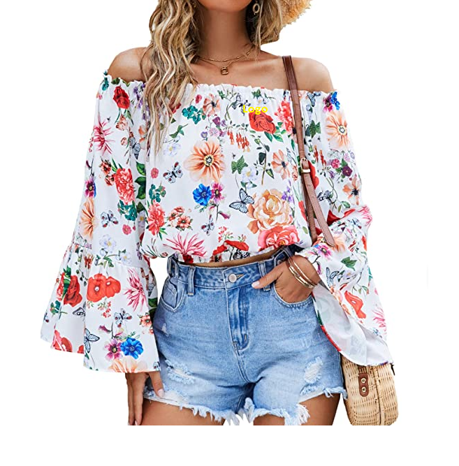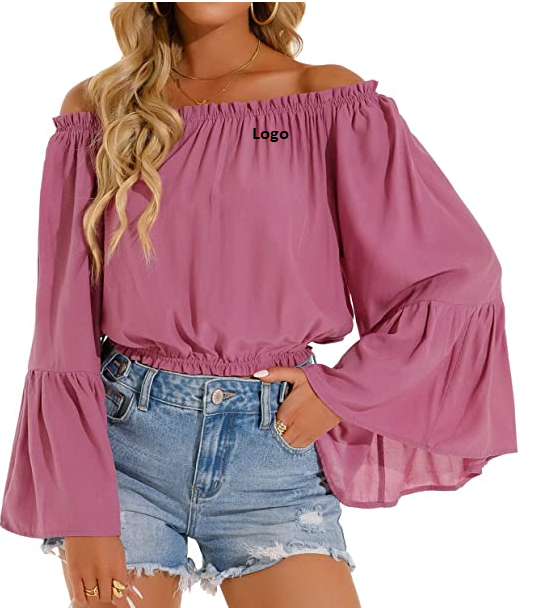 เสื้อครอปเปิดไหล่ของผู้หญิง,เสื้อเบลาส์แขนยาวผ้าชีฟองแบบลำลองเซ็กซี่มีสินค้าขายส่งมากมายสำหรับฤดูร้อน