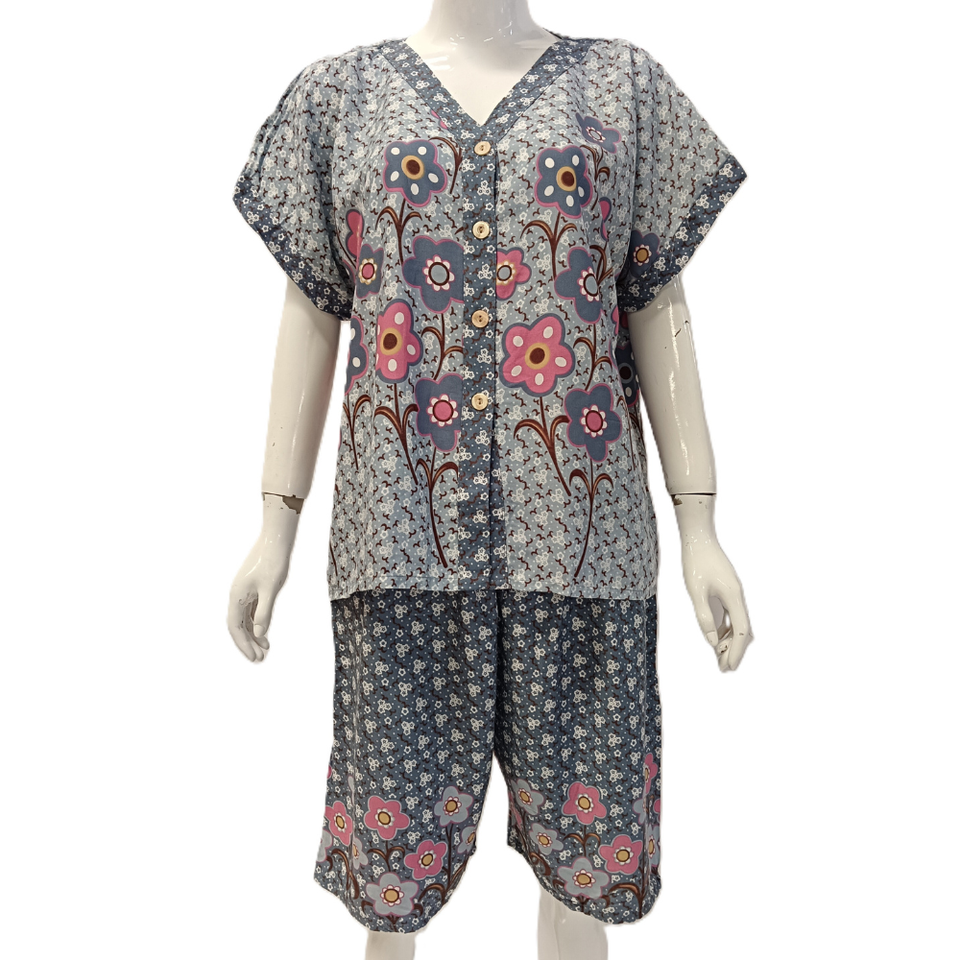 ชุดนอนฤดูร้อนสำหรับผู้หญิง ผ้าเรยอน 100% เสื้อคอวีแขนสั้นและกางเกงยาวถึงเข่า เนื้อผ้านุ่มสบาย ใส่ได้ทุกวัน