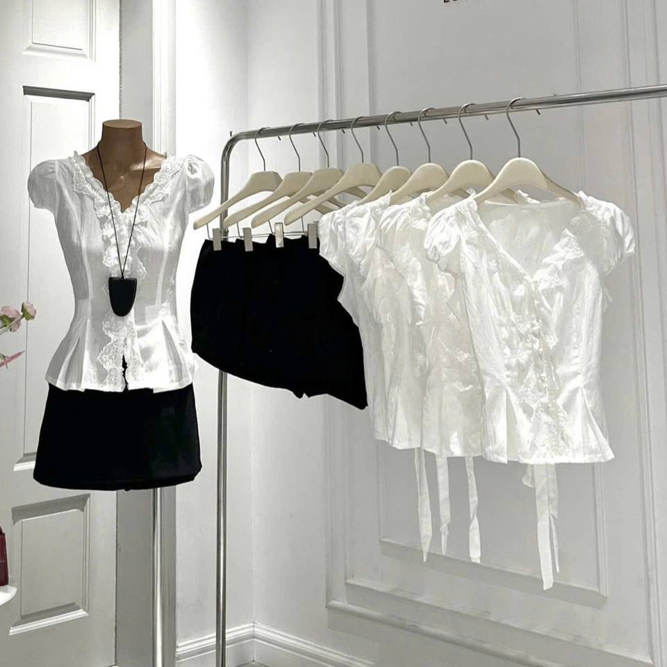 ชุดเซ็ตสองชิ้นสำหรับผู้หญิงฤดูร้อน เสื้อลูกไม้สีขาวล้วนพร้อมกางเกงขาสั้นสีดำ ชุดลำลอง โพลีเอสเตอร์ 100% แห้งเร็ว ระบายอากาศได้ดี
