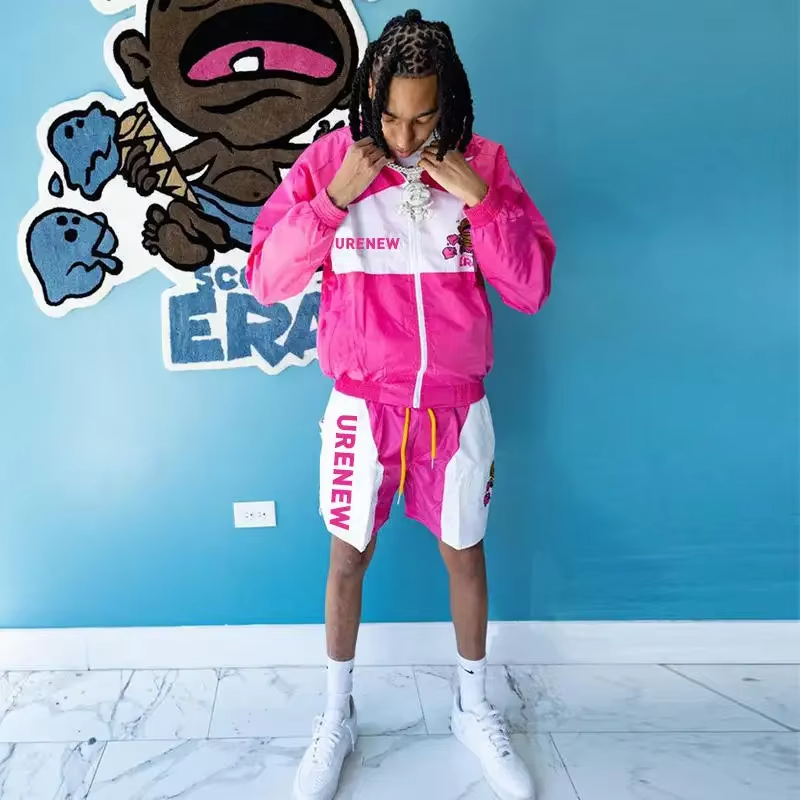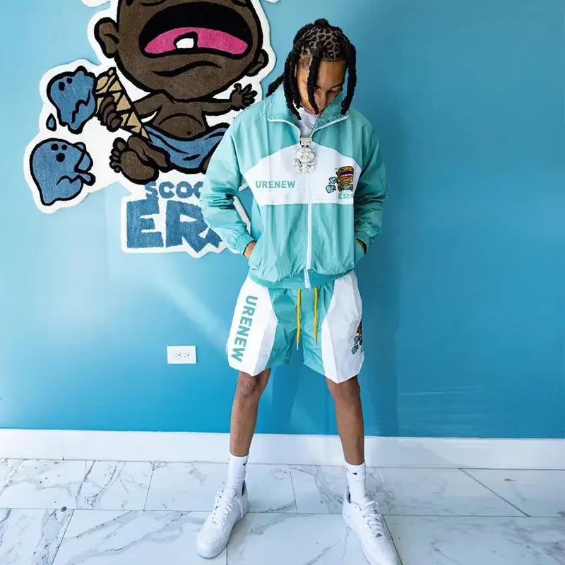ชุดเซ็ต 2 ชิ้น ลายพิมพ์แบบย้อมสีเอซิดสำหรับผู้ชาย เสื้อโค้ท กางเกงขายาว ชุดวอร์ม ซิป แต่งผ้าแบบแพทช์เวิร์ค กางเกงกีฬา เสื้อแจ็คเก็ต ชุดกีฬา