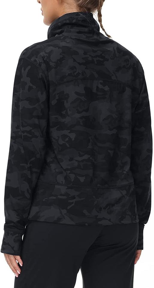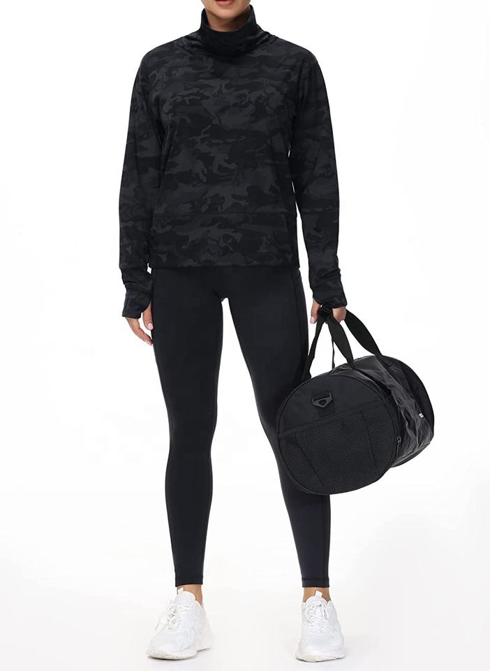 เสื้อสเวตเตอร์คอเต่าสำหรับผู้หญิงเสื้อแขนยาวพิมพ์ลายพรางมีรูหัวแม่มือสำหรับฤดูหนาว